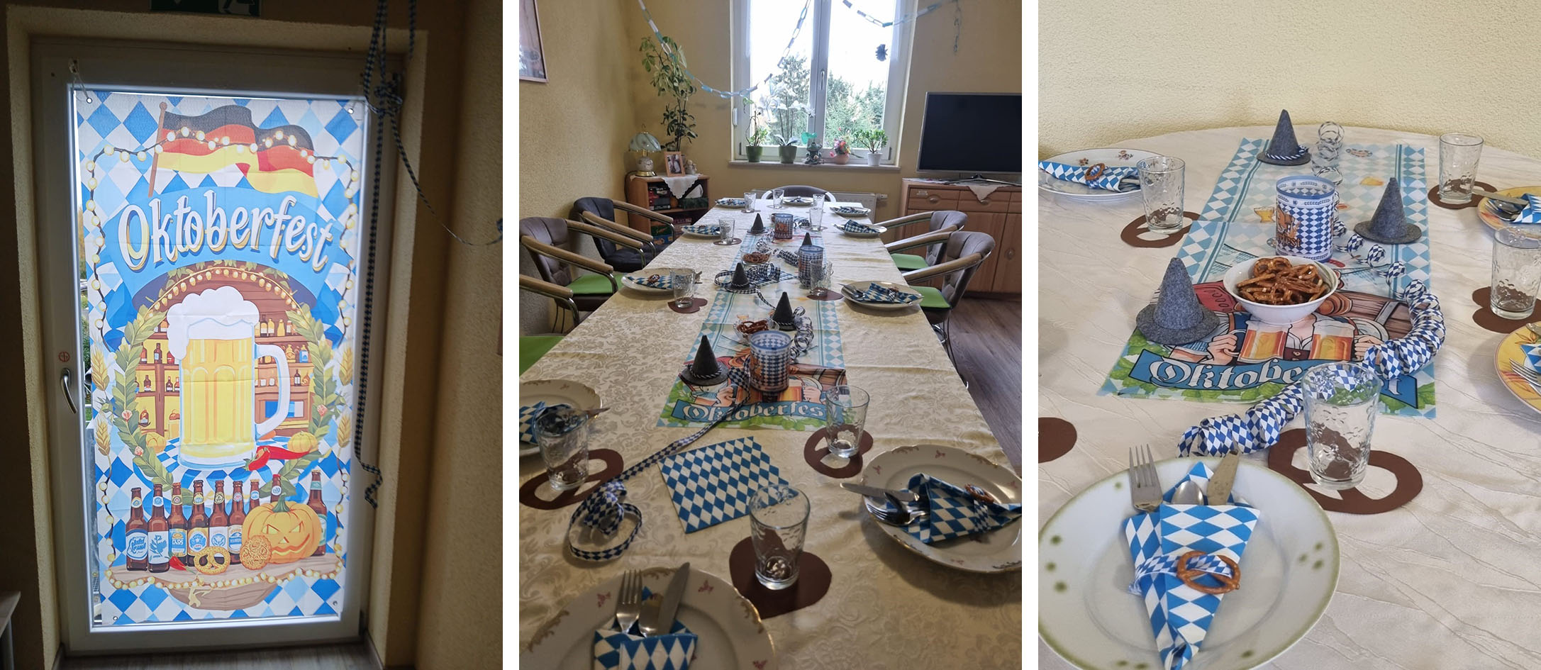 Am 23.10.2025 fand in unserer Raguhner Senioren-WG ein Oktoberfest statt. Alle Bewohner waren mit viel Engagement bei den Vorbereitungen dabei. Sie haben gebastelt, geschmückt und eingedeckt. Der Tag war mit leckerem Essen, gemütlichem Beisammensein und lustigen Spielen ein voller Erfolg.